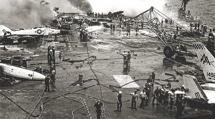 火災(zāi)一直是艦船的噩夢(mèng),不僅威脅到全體船員的安全,造成的連鎖反應(yīng)也是不可估量的。1951年-2008年美國航母發(fā)生火災(zāi)共計(jì)18次,最著名的是1967年福雷斯特號(hào)航空母艦的大火,其中有134名水手死亡,另有161人受傷。美國小鷹號(hào)航空1968年機(jī)庫外的儲(chǔ)藏室曾經(jīng)發(fā)生過火災(zāi),1969年美國企業(yè)號(hào)核動(dòng)力航母、福萊斯特號(hào)發(fā)生火災(zāi),1994年核動(dòng)力航母喬治華盛頓號(hào)同樣也應(yīng)為火災(zāi)引起了相當(dāng)嚴(yán)重的事故。2008年再次因火災(zāi)損失高達(dá)7000萬美元等。