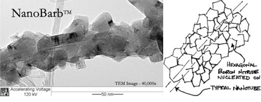 大連義邦引入的新型氮化硼納米管采用無(wú)催化劑、專利技術(shù)生產(chǎn),與傳統(tǒng)氮化硼納米管不同,在納米管的外表形成了不規(guī)則的六方氮化硼結(jié)晶體,這種結(jié)構(gòu)最顯著的優(yōu)勢(shì)是在與基體材料混合時(shí),優(yōu)化氮化硼納米管顆粒與基體材料之間的交聯(lián),增強(qiáng)復(fù)合材料的機(jī)械性能。