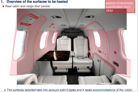 目前,飛機艙室內(nèi)部加熱系統(tǒng)使用的還是空調(diào)系統(tǒng),坐在窗口附近的乘客通常會有低溫的感覺,也包括艦船上的艙室中腳腿部寒涼感受,都是整個艙室溫度不夠均衡導致。Villinger研發(fā)的LiteHeat?艙室內(nèi)部..